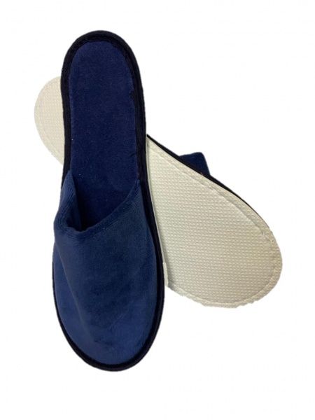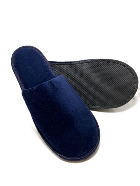 Тапочки велюровые темно-синие, закрыт. мыс, подошва ЭВА 4,5 мм. мод.В-111